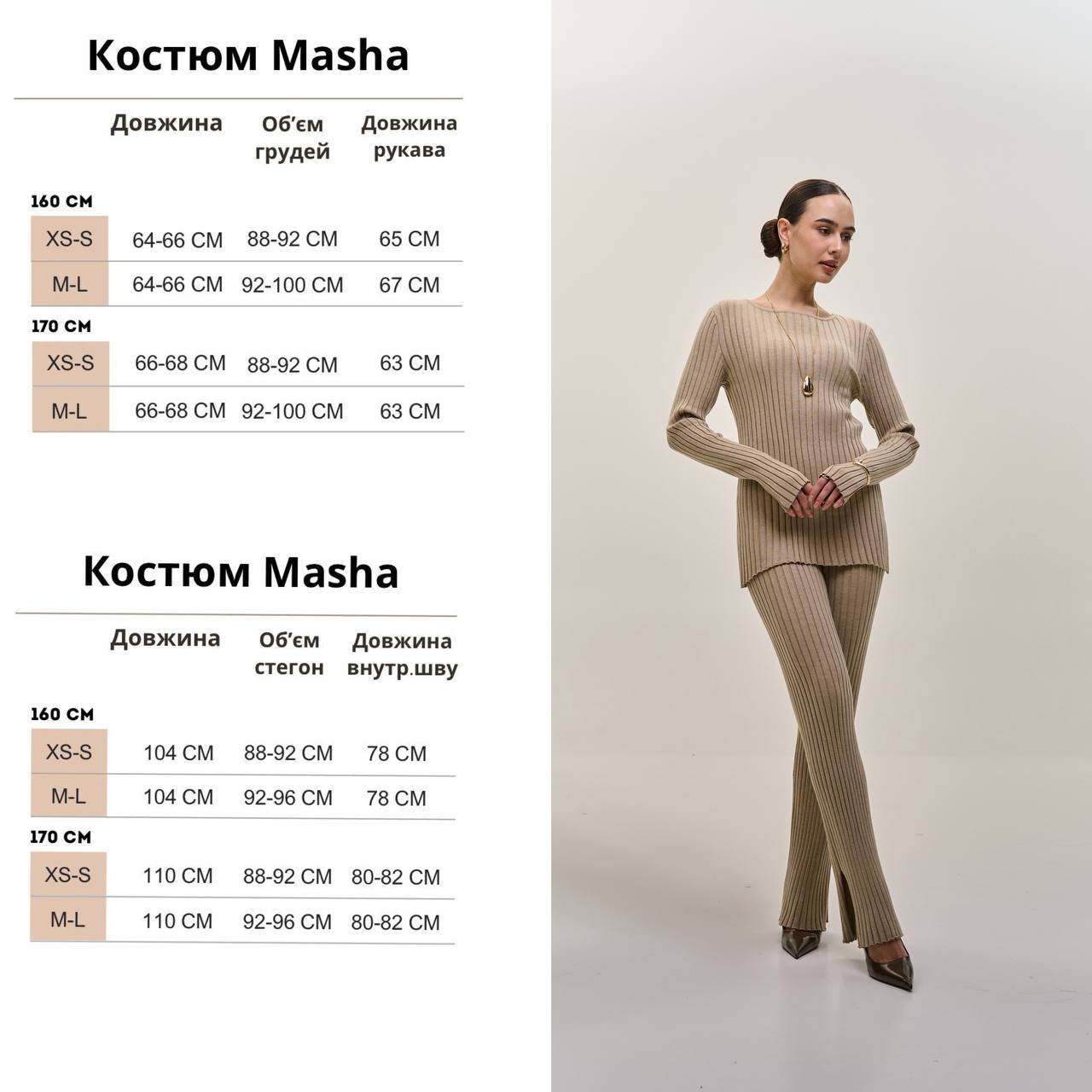 M/L 160, M/L 170, Xs/s 160+, Xs/s 170+